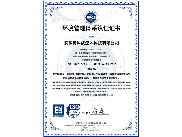 安徽英科成流體科技有限公司位于黃山腳下長江之濱的中國古銅都-安徽省銅陵市。公司注冊(cè)資金1.1億,是國內(nèi)一家專業(yè)致力于給排水行業(yè)系統(tǒng)解決方案、閥門以及智能閥門技術(shù)研發(fā)與生產(chǎn)銷售服務(wù)為一體的企業(yè)。 我們擁有完善的質(zhì)量控制體系和檢測(cè)設(shè)備,公司主要的產(chǎn)品有閘閥、蝶閥、偏心半球閥、液控蝶式止回閥、靜音止回閥、橡膠瓣止回閥、活塞式流量調(diào)節(jié)、錐型閥、節(jié)能型泵控閥、倒流防止器、減壓閥、排氣閥、排泥閥、伸縮器、閘門、啟閉機(jī)等二十多個(gè)系列,可以充分滿足客戶的一站式需求!